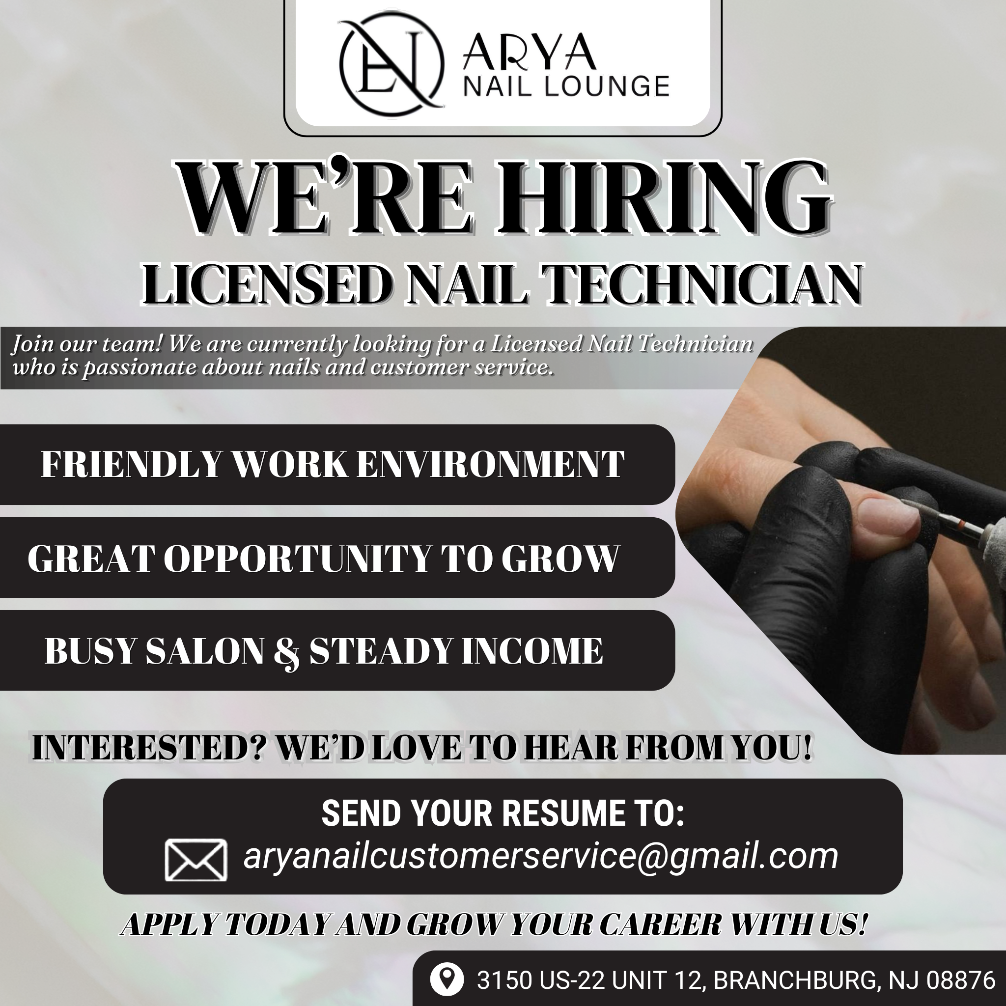 Join our team! We are currently looking for a Licensed Nail Technician who is passionate about nails and customer service.